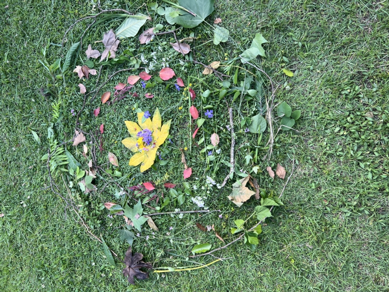活动由五感身体扫描、五感森林浴体验和大地曼陀罗植物疗愈创作三部分组成。首先是五感身体扫描,这是正念冥想中常用的一种技术,通过身体扫描,保持对身体各个部位的觉知,熟悉身体的各种感觉,从而增加自我觉察的能力,关注自己的身心健康。接着是五感森林浴与音乐疗愈,在自然环境中,运用自然声音与自然乐器的结合,帮助我们学习关注当下,达到辅助疗愈的目的。最后是大地曼陀罗创作,每位团体成员就地取材,收集10种植物素材,共同创作一幅大地曼陀罗作品,为自己正向赋能。