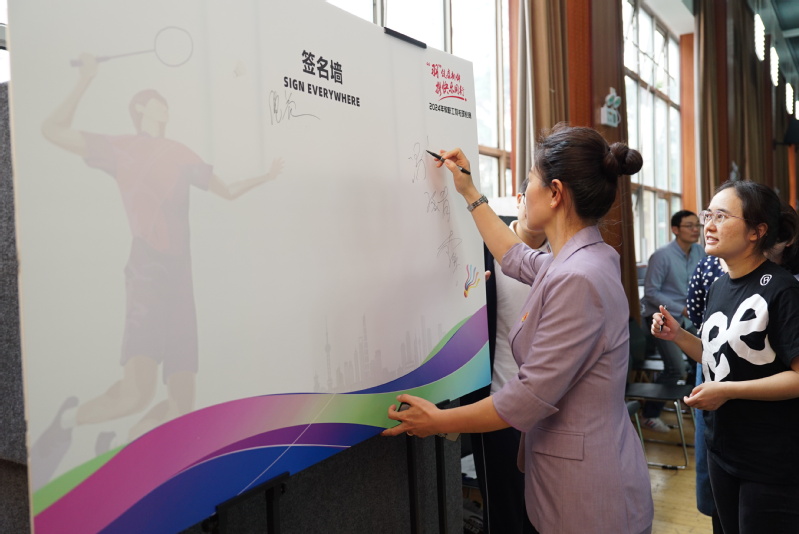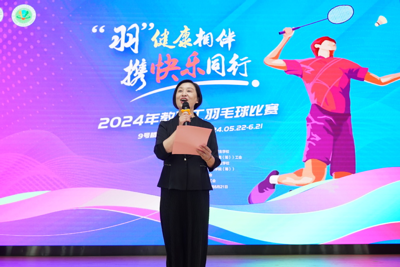 为推动上海健康医学院附属卫生学校(上海健康护理职业学院(筹))教职工业余文化体育建设,提升其身体素质,增强各部门教职工的交流互动,塑造团结拼搏的教职工队伍。2024年5月22日至6月21日,学校举办了“‘羽’健康相伴、携快乐同行”教职工羽毛球比赛,校党总支书记钱艳,教工第三党支部书记冯宗媚、护理系主任石蕾、口腔药学系主任金燕婷、体育教学部主任倪益、综合办公室主任李莉、总务科科长朱聿璜出席启动仪式。启动仪式上,钱艳鼓励参赛教职工展现出团队协作、顽强拼搏的精神风貌。随后钱艳宣布羽毛球比赛正式开赛。