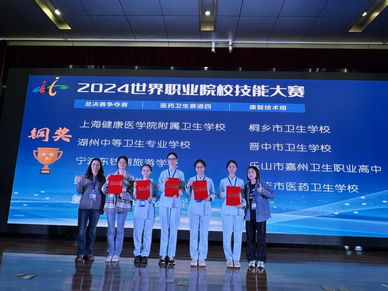 2024年10月,“全国职业院校技能大赛”正式升级为“世界职业院校技能大赛”,大赛吸引了来自全国各地的众多职业院校参与,覆盖面广,参赛人数众多,社会影响力大。我校护理技能团队、养老照护团队、康复技术团队、母婴护理团队四支队伍代表上海市参加世界职业院校技能大赛争夺赛,在医药卫生赛道(护理技能组)、公共管理与服务赛道(养老照护小组)、和医药卫生赛道(康复技术组)中表现出色,斩获三枚铜牌,展现了我校学子的优秀素质与专业能力。