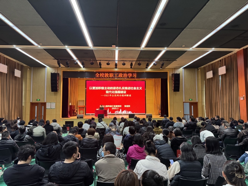 为深入学习贯彻两会精神,加深全体教职工对两会精神的理解与领悟,推动学校各项工作高质量发展,3月28日学校举办全校教职工政治学习暨2025年全国两会精神专题讲座。本次讲座特邀徐汇区委党校副教授、基层治理教研室主任张旭东担任主讲人。