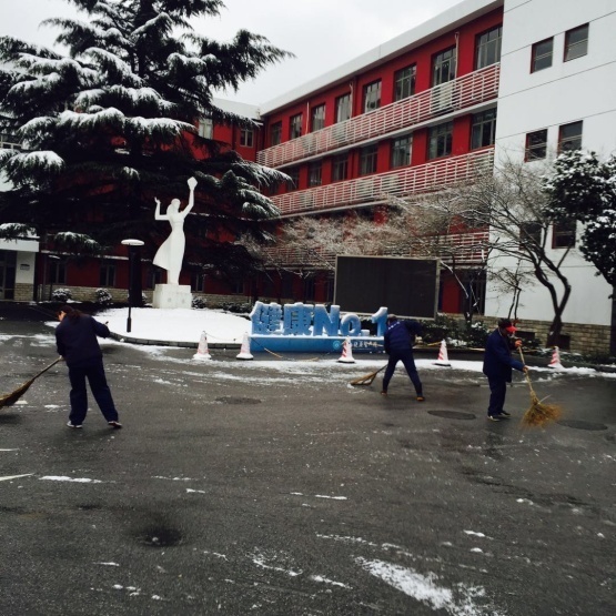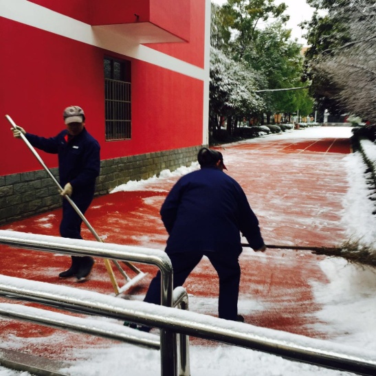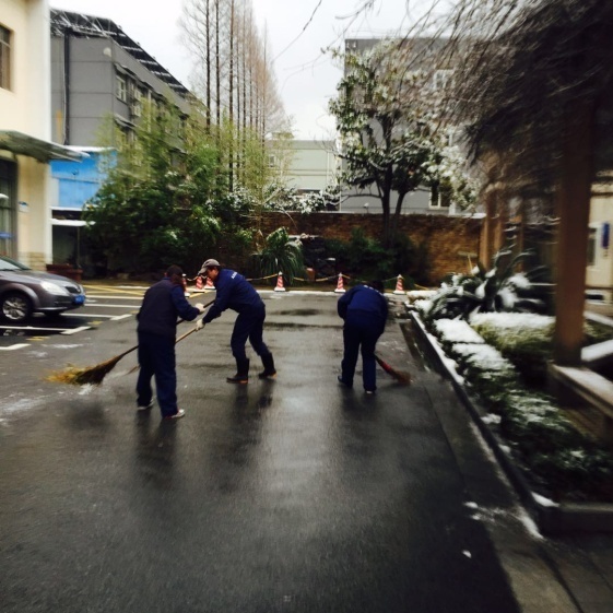 昨日的上海漫天飞雪,几乎每个人都是雀跃不已的,但是欢乐的同时,路上的积雪和道路的结冰可能会给假期还在学校的学生和教职工带来了出行的不便。为了保障我校园的道路通畅,学校师生的安全通行,根据总务科的安排,今天早晨六点多,物业保洁主管杨师傅就带领八名保洁人员在校园内各个重要路段铲除积雪和道路滑冰,早上8点多已将校园道路清扫干净,为学生和教职工的出行带来了安全和便利。