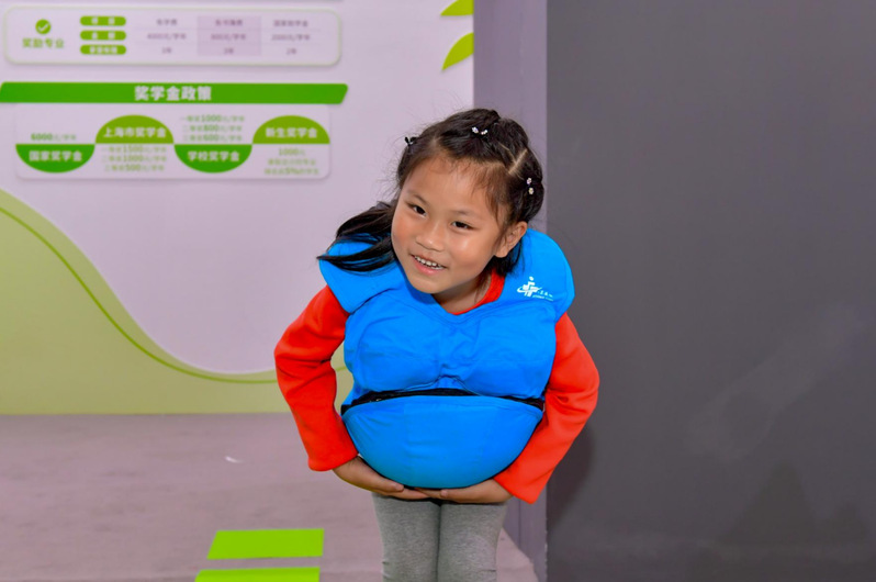 学校围绕活动主题,立足专业特色,打造内容丰富、形式新颖的展区,展示了学校发展历程、专业介绍、校园文化等,并精心打造了“徒手心肺复苏”“口腔数字化扫描”“中药香囊制作”“老年服、孕妇服体验”四个沉浸式的体验项目。在“徒手心肺复苏“展项,学生志愿者手把手地传授心跳呼吸骤停的急救方法,引来了众多观众“围观”学习。“口腔数字化扫描”展项通过专业设备仪器3D扫描成像,帮助体验者直观了解自己的牙齿状况,提升口腔卫生保健意识。在“中药香囊制作”展台,体验者亲手制作中药香囊的过程中,体会中医的博大精深和古代劳动人民的生命哲学。学生们在“老年服、孕妇服体验中感受到了母亲在孕育过程中的艰辛以及老年人生活中的种种障碍。前来观展的家长、师生们兴致盎然,在体验的过程中深刻了解医护文化,领略医护职业的魅力。参展期间,副校长徐敏来到展会现场慰问师生志愿者,感谢他们的辛勤付出。