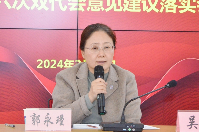 最后,郭永瑾讲话。她表示:第一,此次会议是一个非常好的面对面听取教代表及教职工意见建议、反映急难愁盼问题的通道,希望能够继续下去、越办越好。她希望职能部门在呼应教职工建议时要主动靠前一步,也呼吁教代表要当好宣传员,把会上职能部门的反馈带给教代表。第二,对于职能部门负责的优化完善、即知即改措施必须要见事见效,对于长远机制性、体制性的相关工作,要认真调研、呼应诉求、积极思考,为基层着想、急群众所急。第三,她要求各职能部门加强群众观念,树牢“金杯银杯不如老百姓的口碑”的政绩观,寓服务于管理,主动担当,互相补位,做到“事先有沟通,会上有呼应”,为营造和谐稳定、凝心聚力、积极向上的校园氛围而不懈努力!