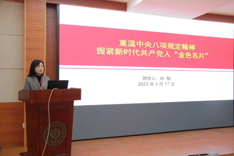 会上,徐敏首先作题为《重温中央八项规定精神,握紧新时代共产党人“金色名片”》的党风廉政教育领学报告。徐敏从今年中央纪委国家监委网站公开通报的一起案例讲起,分别从中央八项规定主要内容、中央列出违反八项规定清单80条、九个关键词看中央八项规定出台这十年、深刻领会中央八项规定精神将自我革命进行到底四个部分展开。她在领学中讲到:十年来,以习近平同志为核心的党中央从制定实施中央八项规定开局破题推进全面从严治党,推动作风建设取得历史性、开创性成就,党风政风焕然一新。以中央八项规定为切入口的作风建设成为新时代党的自我革命伟大实践的重要标志。八项规定深刻改变中国,已成为新时代共产党人作风建设的一张“金色名片”。在领学的过程中,全体参会人员还以在线答题的形式加强了理论学习。