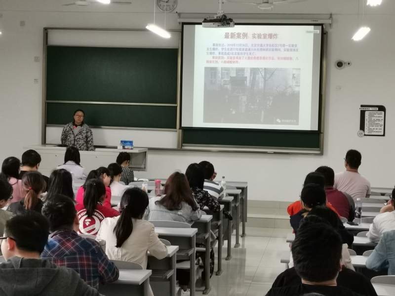 4月25日下午,协同科研中心“实验室安全培训”在南苑教学楼W402进行,培训由科技处组织召开,来自中心实验室的62名学生及6名中心实验室管理教师参加。培训从下午1:45开始,到4:00结束,期间包括安全培训讲座和闭卷安全测试两部分内容。