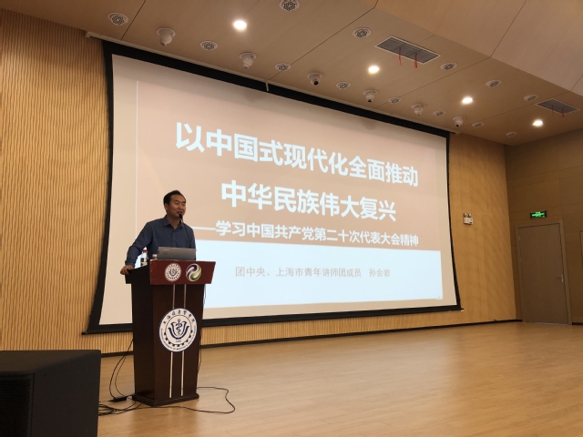4月20日下午,学校入党积极分子培训班在新南苑300人报告厅专题学习党的二十大精神。共青团中央、上海市青年讲师团成员孙会岩副教授应邀作“以中国式现代化全面推动中华民族伟大复兴——学习中国共产党第二十次全国代表大会精神”讲座,会议由临床医学院组织员邵真如主持,全校250名入党积极分子参加了此次学习。