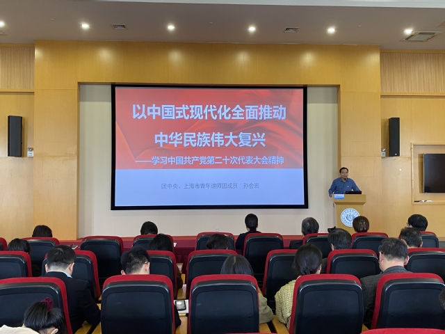 动员会当天,三个学院举行了主题教育首次专题学习,邀请共青团中央、上海市青年讲师团成员孙会岩副教授作“以中国式现代化全面推进中华民族伟大复兴——学习中国共产党第二十次全国代表大会精神”讲座。孙会岩从党的二十大召开的意义、党的二十大报告的重要内容以及学深悟透落实党的二十大精神的举措三个方面讲述了以中国式现代化全面推进中华民族伟大复兴的系列重大理论和社会实践。通过学习,全体教职工进一步统一了思想、统一了意志,为学院各项事业的健康发展提供坚定的思想保证。