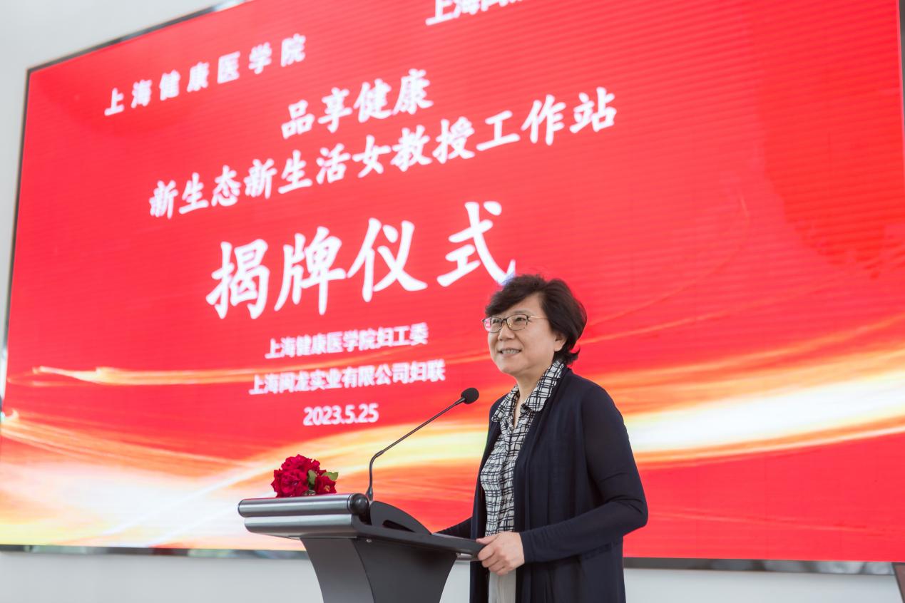 接着,上海健康医学院妇工委与闽龙实业妇联共建的“品享健康,新生态、新生活女教授工作站”揭牌仪式举行,凌文惠主持。