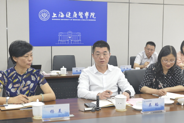 6月9日上午,校长吴韬与上海现代服务业联合会大健康专委会主任范金成一行开展调研座谈会议,校主题教育调研组、党校办、产学合作处、科技处、发展规划处、图文信息中心、临床医学院、护理与健康管理学院、康复学院、药学院、医疗器械学院等负责人参加座谈。会议由校党委副书记于莹主持。产学合作处副处长高广文介绍了学校的历史沿革、教育教学、人才培养、科学研究、学科建设等情况。