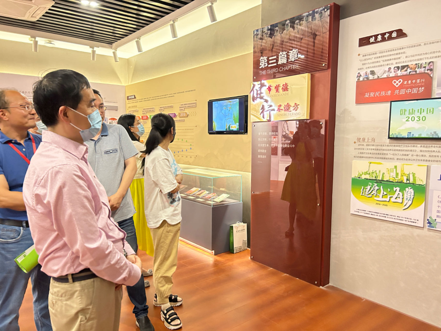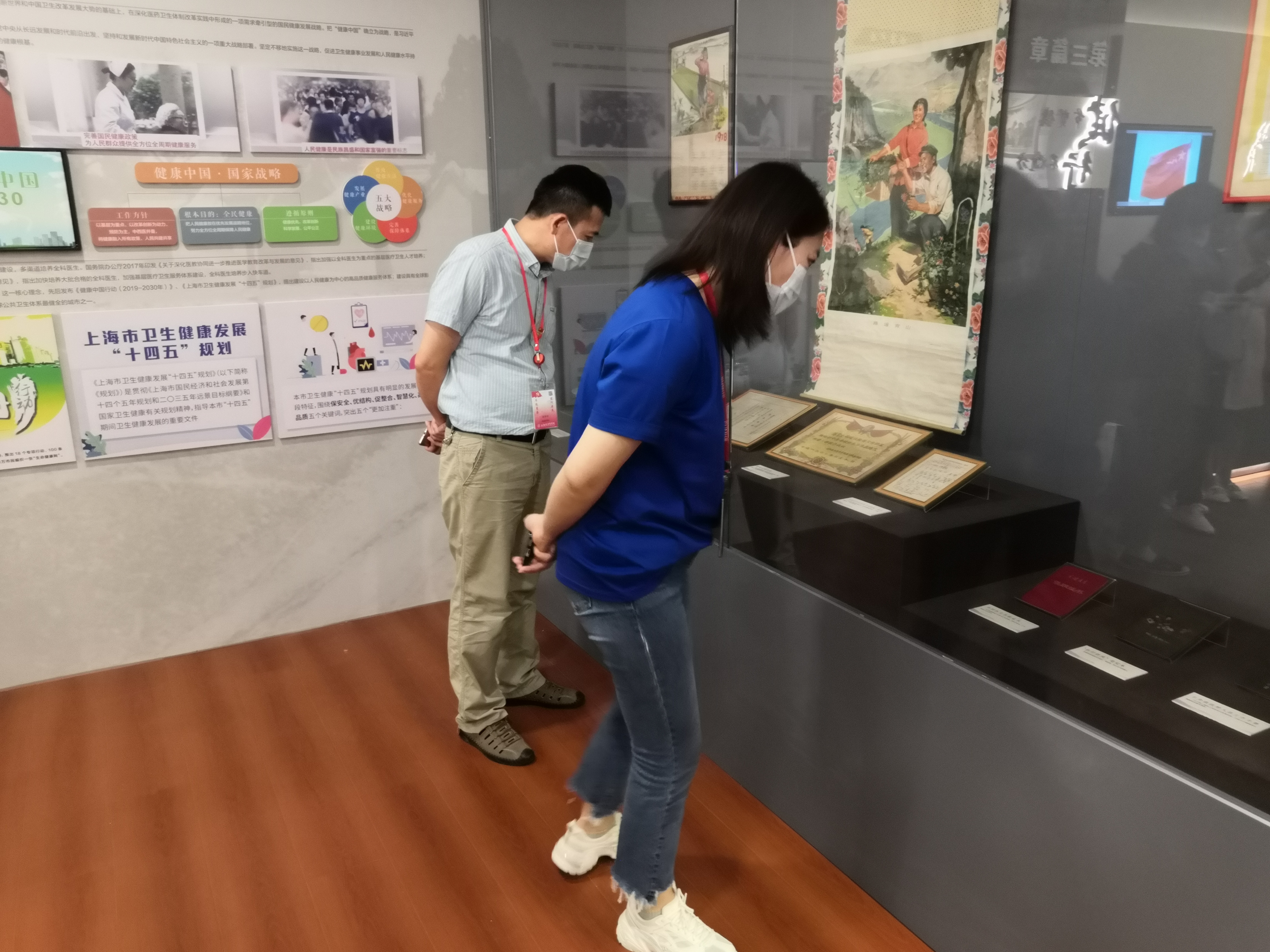老师们认真听讲,仔细察看展品。40余件展品呈现了上世纪赤脚医生扎根农村工作、生活的场景,丰富的史料展板展现着数十年来中国健康卫生事业发展的沧桑巨变。老师们表示,将以先辈们为榜样,潜心治学、躬耕教坛,为党育人、为国育才,为培养社会需要的健康守门人贡献力量。