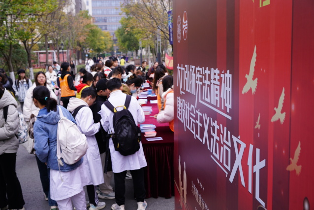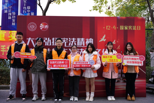 12月4日,“国家宪法日”当日,党校办法务室在南苑举办“大力弘扬宪法精神,建设社会主义法治文化”现场宣传活动,活动通过限时背诵宪法条目和《上海健康医学院章程》条款、法律知识问答、与《宪法》合影打卡等游戏方式,向师生普及宪法知识,引导师生学习宪法、了解学校章程。