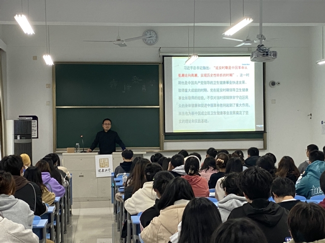 党的二十大报告提出,要用好红色资源,深化爱国主义、集体主义、社会主义教育,着力培养担当民族复兴大任的时代新人。为贯彻落实这一要求,推进党的二十大精神融入思政教育,11月29日下午,马克思主义学院江先锋老师在南苑W105教室给22级检验与检疫(本科)1班、2班同学作了一场题为《延安时期中国共产党发展卫生健康事业的探索》的专题讲座。