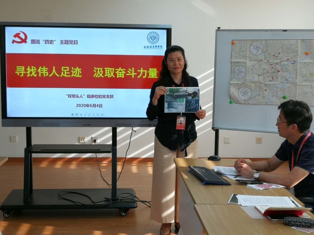 6月4日下午,我校“双带头人”临床检验党支部在北苑4507工作室成功举行了首次“图书四史”之“图说上海”学习教育。