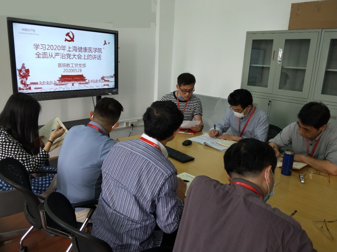 随后,纪检委员尚昆老师带领大家学习了《2020年上海健康医学院全面从严治党大会上的讲话》。