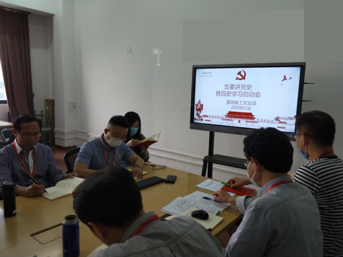 根据学校‘四史’学习活动部署和学院四史学习动员,5月28日下午医临教工党支部全体党员在学院514会议室召开“支委讲党史暨‘四史’学习启动会”,会议由组织委员张培茗老师主持。生医教工党支部纪检委员王选老师作为二级学院纪检监察督导督查了整个议。