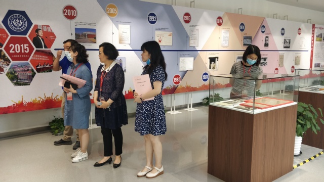 参观环节,老师们站在玻璃展柜、文化墙前,凝心看着,第一张毕业证书、一本本教材、一张张有故事照片、一段段校名的变更,通过这些打开了国内第一所“健康”医学高校的画轴。此次主题展全面反映了学校在七十年医学人才培养的历史中,所走过的曲曲折折的发展历程。老师们一同回顾了学校七十年办学的历史,也切身感受到了建校五年来学校取得的经验和成绩。