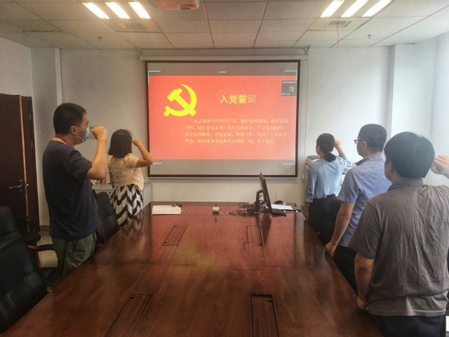 最后,朱清书记带领党员们重温入党誓词,铿锵恢宏的誓词,强烈震撼着线下和线上的每一位党员,一字一句,神圣而豪迈,体现了党员同志们对中国共产党的无限忠诚。(马克思主义学院)