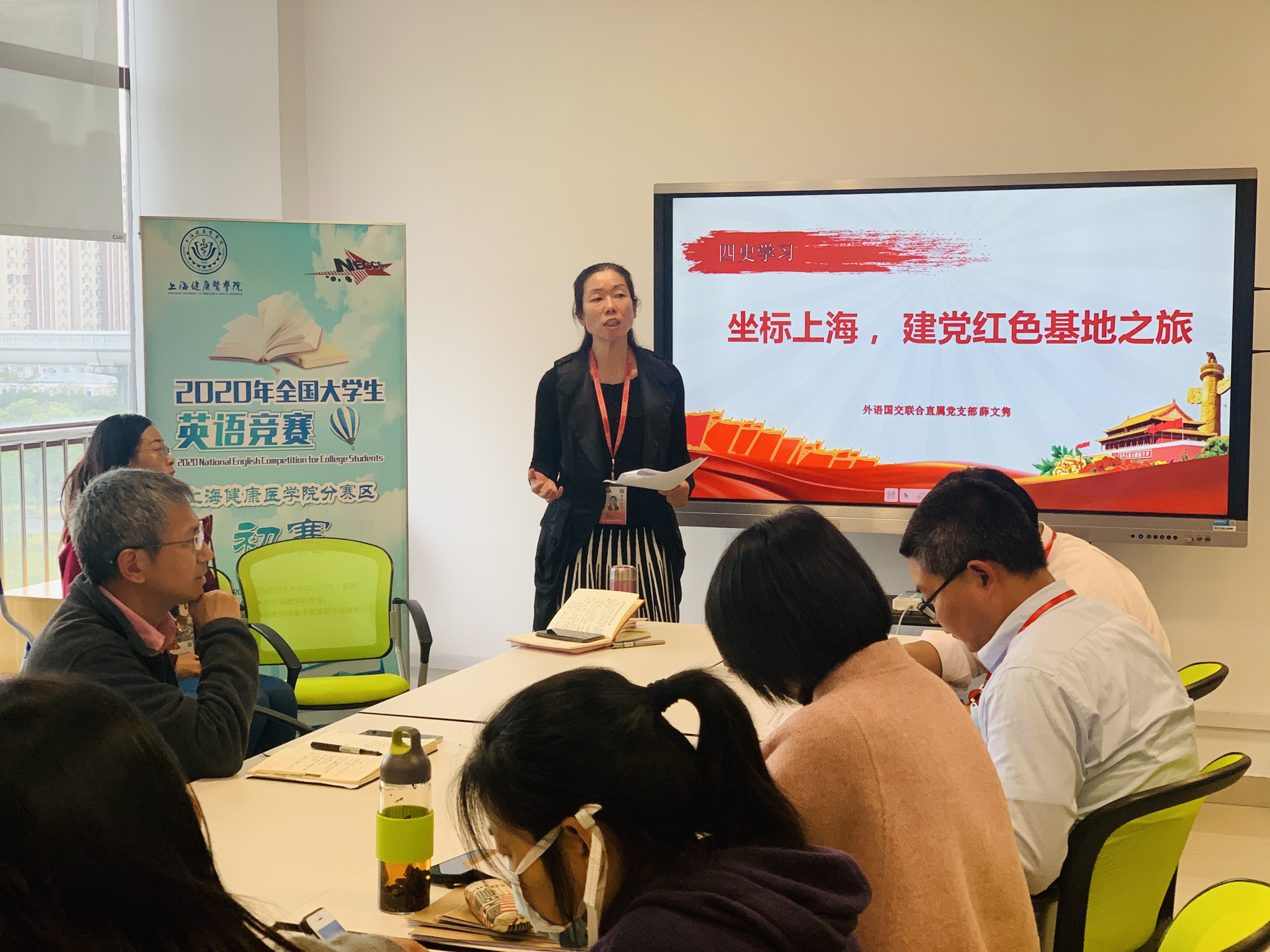 习近平总书记曾说过:“历史是最好的教科书,也是最好的清醒剂”,而上海作为中国共产党的诞生地自然留下了众多中国革命红色历史足迹供后人追寻瞻仰。10月29日下午,外语教学部主任薛文隽向外语国交联合直属党支部的全体党员、教职工做了题为《坐标上海,建党红色基地之旅》的专题党课,较为系统地介绍了一批具有历史代表性和外语特色的红色教育基地。党课由支部书记吕永红同志主持。